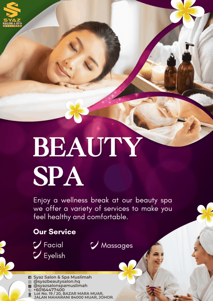 Experience advanced beauty & relaxation at Syaz Salon & Spa Muslimah with high-tech facial treatments for flawless skin and soothing body massages for ultimate rejuvenation.